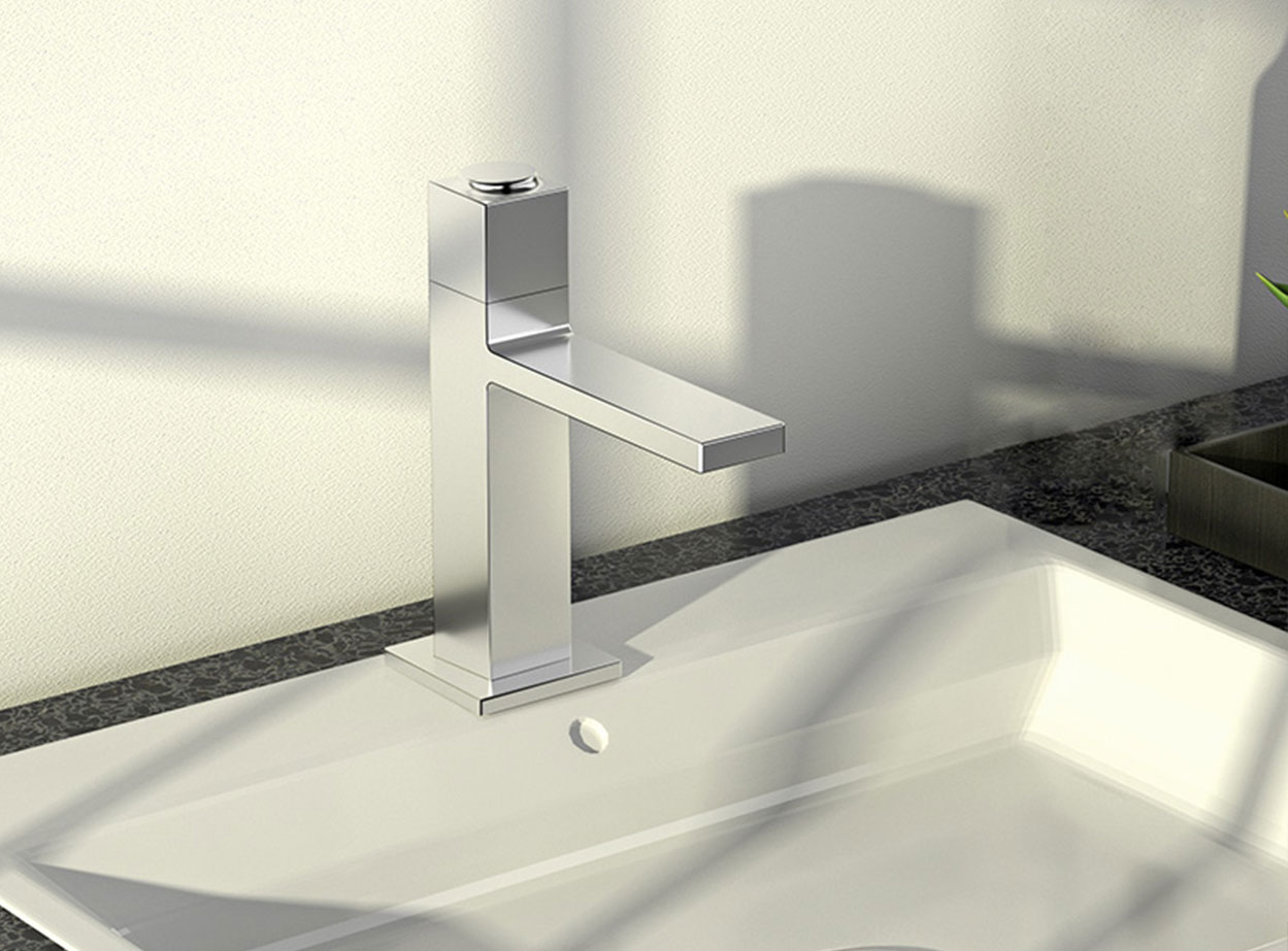 單冷龍頭 1、G1/2銅快開閥芯 2、G1/2螺紋管安裝結構 3、瀑布型出水方